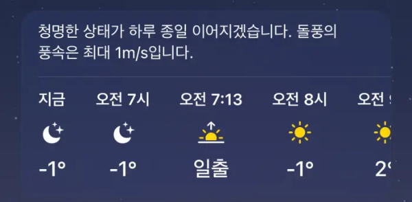 아침에 달리기 전 아이폰 날씨 앱을 보니 기온이 영하 1도였다. 춥다고 하기도 뭣하고 그렇다고 시원하다고 표현하기엔 차갑게 느껴지는, 초겨울 날씨다.