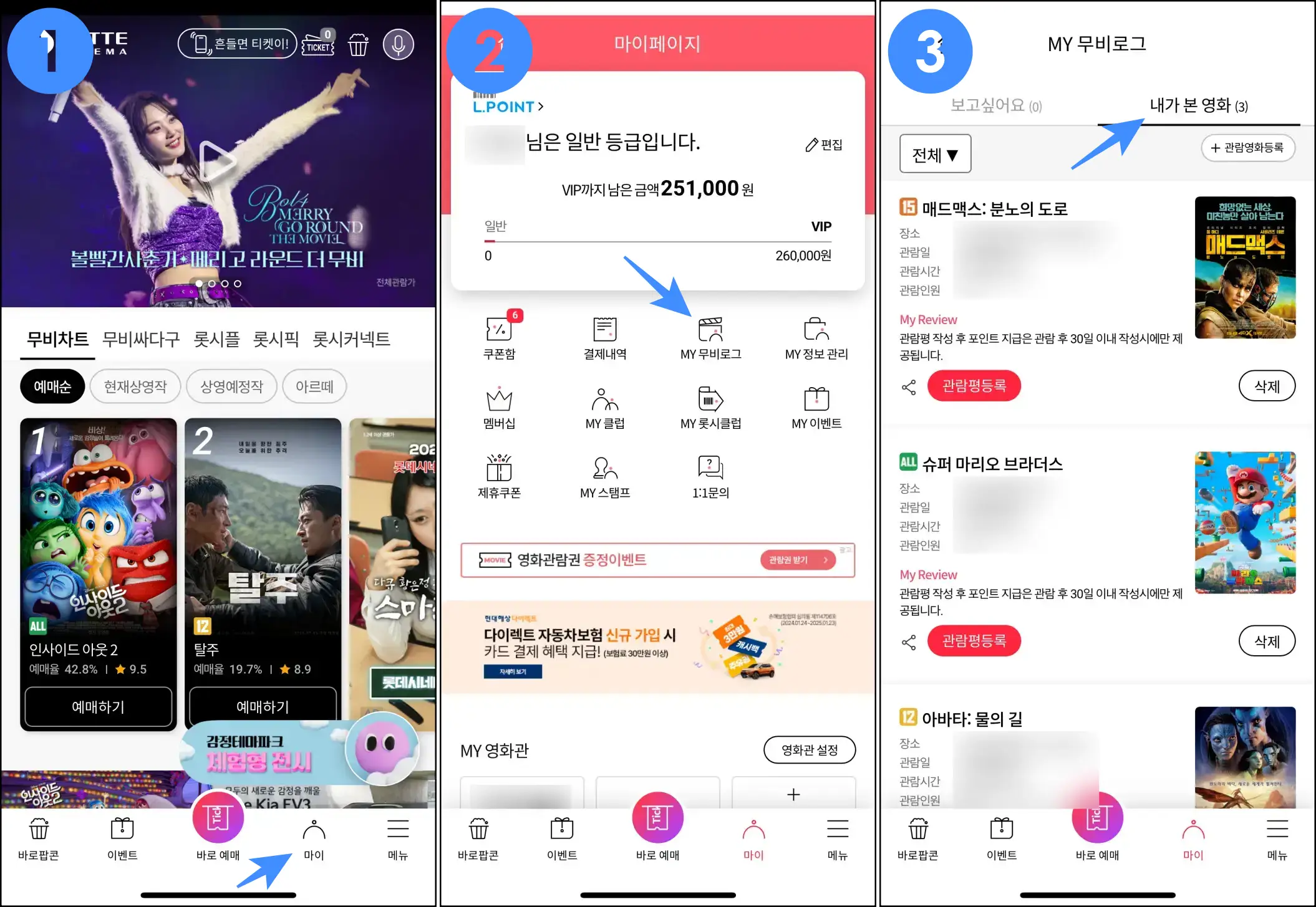 iOS 롯데시네마 앱 ‘MY 무비로그'에서 내가 본 영화 확인하기